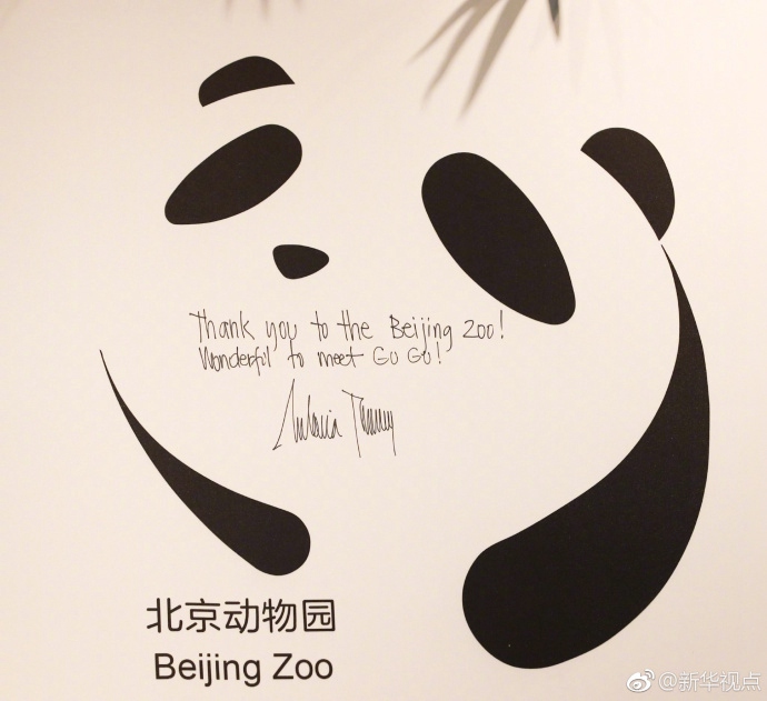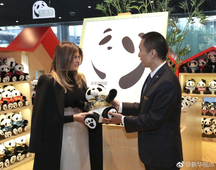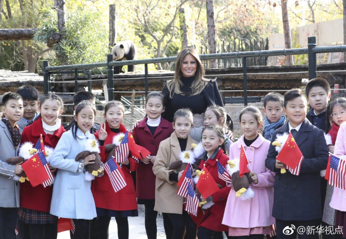 11月10日上午,美國總統(tǒng)特朗普的夫人梅拉尼婭參觀北京動物園熊貓館。來看現(xiàn)場照片。ㄓ浾啐嬇d雷、王慧慧)(新華社“新華視點”微博報道)