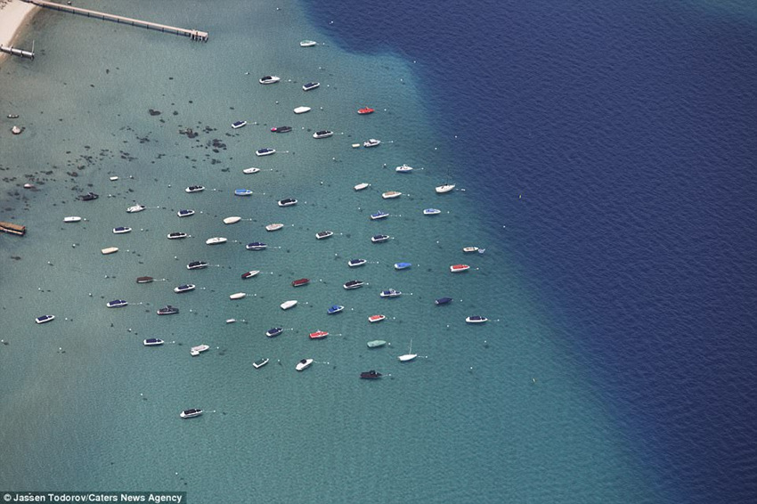 夏季有許多小船停泊在位于加州內(nèi)華達(dá)山脈的太浩湖。