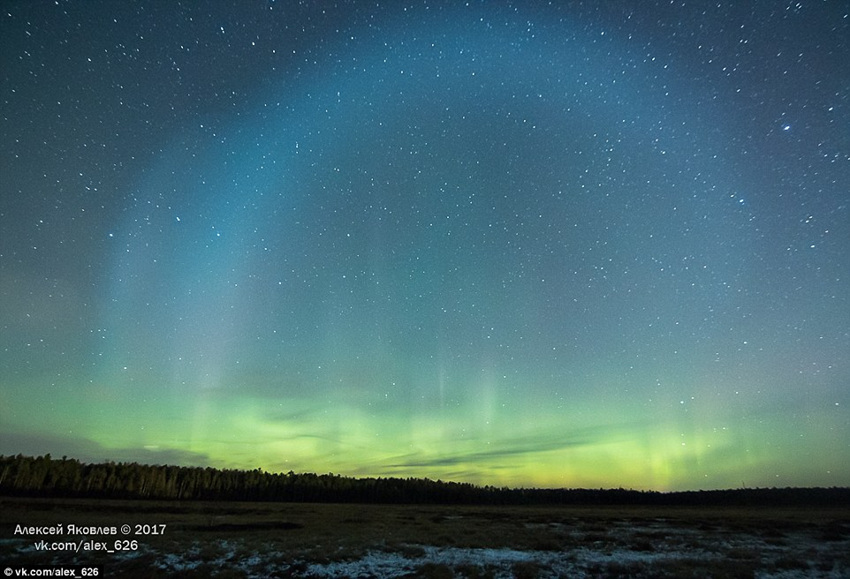 攝影師阿列克謝·雅克夫列夫承認,他在托木斯克州目擊到這一奇觀時感到害怕!斑好我不一個人,一群人不能都產(chǎn)生幻覺!