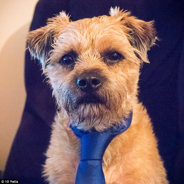 小獵犬德克斯系著它的絲綢領(lǐng)帶,一臉正經(jīng)的樣子仿佛是在拍攝辦公室照片,真是無敵可愛。
