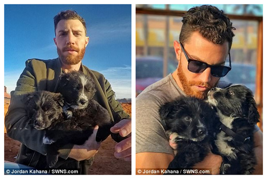 卡哈納在亞利桑那州發(fā)現(xiàn)這兩只被遺棄的小狗,并救了起來。