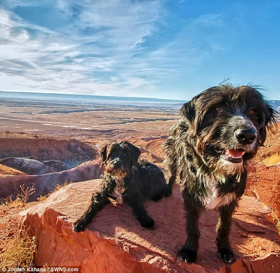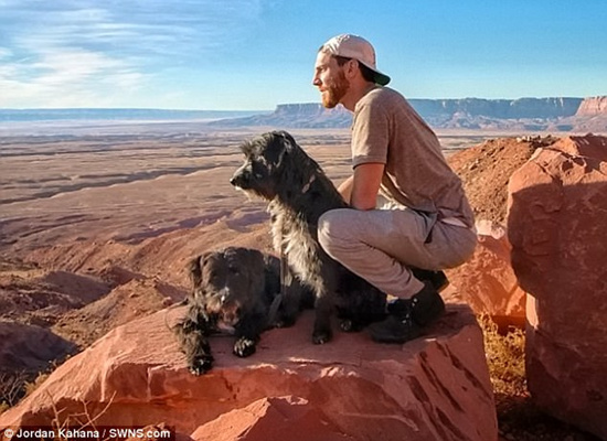 30歲的喬丹·卡哈納(Jordan Kahana)從洛杉磯開車前往科羅拉多州的路上救助了兩只被遺棄的小狗,并帶著他們踏上了美國之旅。自2016年12月以來,卡哈納已近帶著他們穿越了五萬多公里,游覽了美國的35個州、游遍了美國東、西部海岸、參觀了12個國家公園、足跡踏遍紐約時代廣場和洛杉磯的好萊塢標(biāo)志等地標(biāo)。