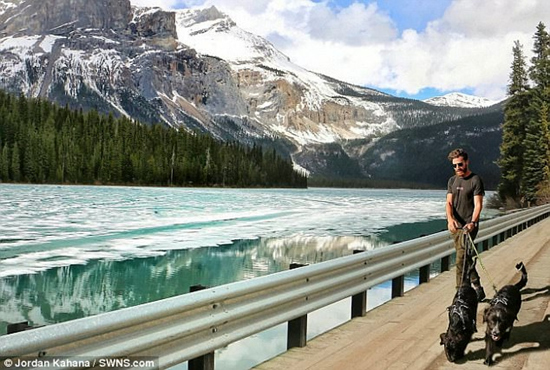 除了美國外,他們還去了加拿大。圖中是在不列顛哥倫比亞的翡翠湖旁留影。