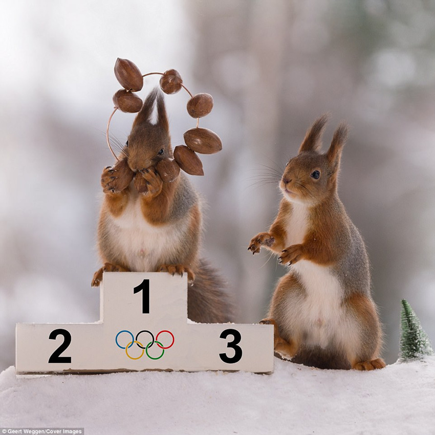 右邊的小松鼠沒能贏得冠軍,痛失堅(jiān)果。