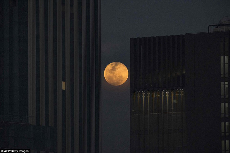 曼谷兩棟辦公樓之間的超級(jí)藍(lán)血月。