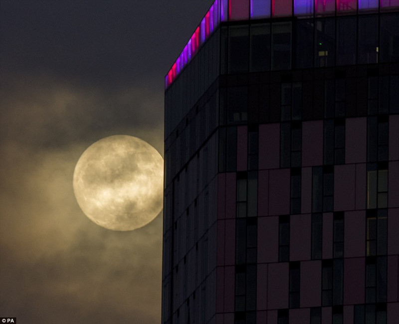 英格蘭南部克羅伊登藏紅花廣場(chǎng)上的超級(jí)藍(lán)月。