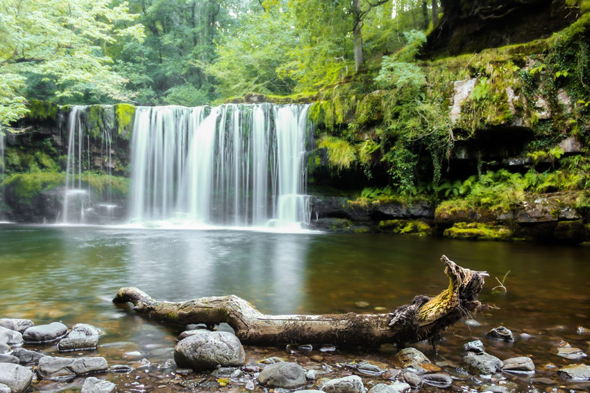 位于威爾士山間溪流邊的一個(gè)森林瀑布。