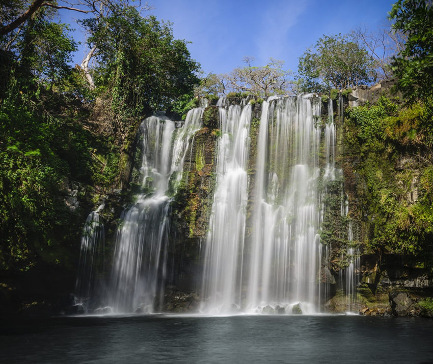 陽光灑在南美洲國家哥斯達(dá)黎加的一處熱帶森林瀑布上。