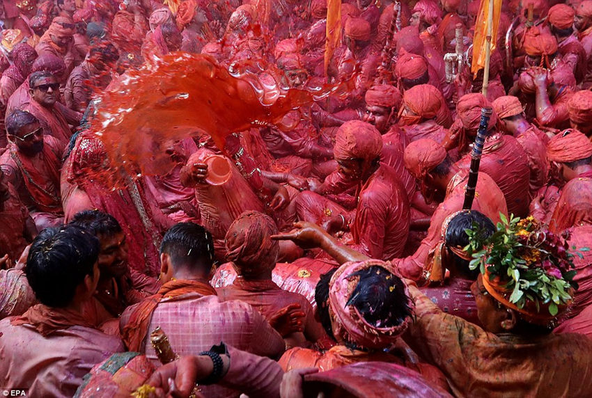 到一天結(jié)束的時(shí)候,男人和女人都從頭到腳濕透了,涂滿(mǎn)了各種顏色的顏料和粉末。