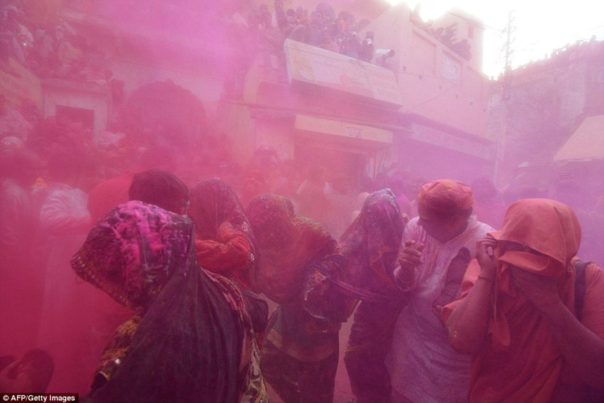 狂歡者們用衣服捂住嘴巴和眼睛。