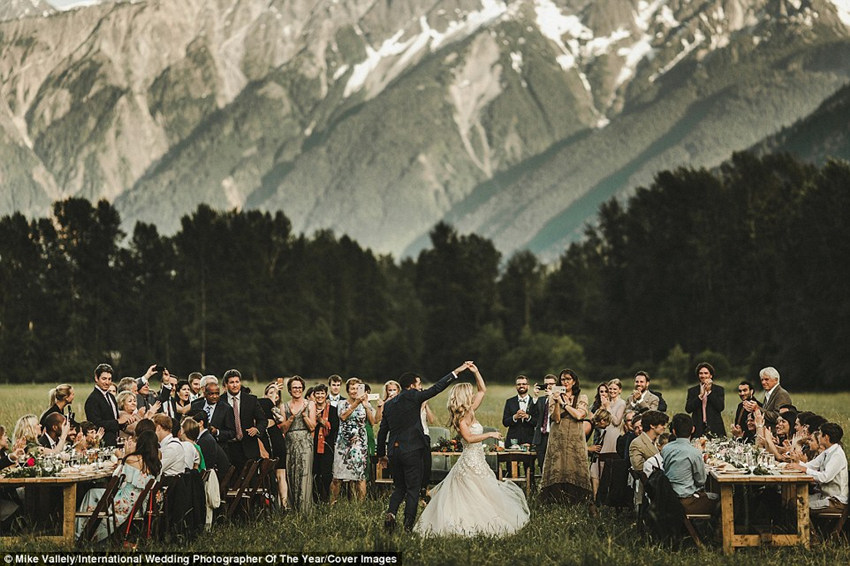 加拿大邁克谷的田野里跳舞的一對(duì)新人。