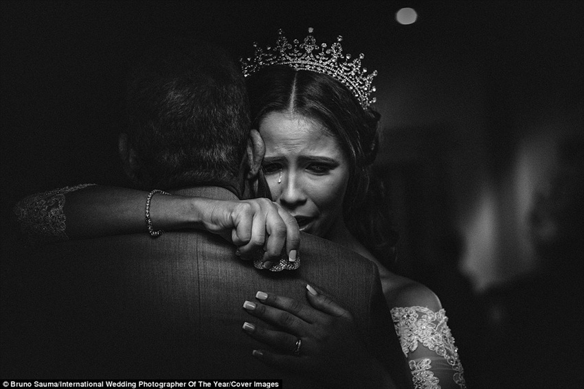 美國攝影師布魯諾·索瑪?shù)淖髌,新娘緊緊抓住她父親。