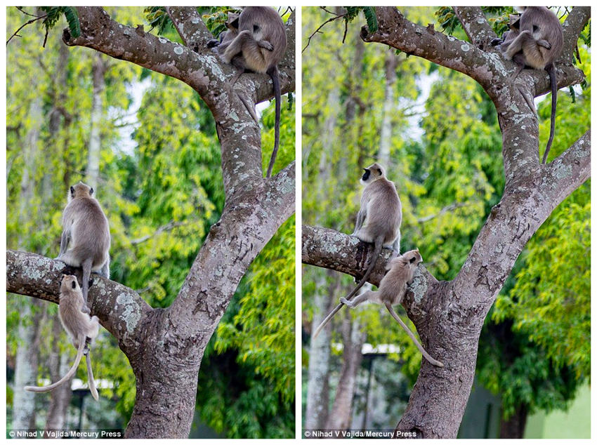 玩累了順著媽媽的尾巴爬上來。