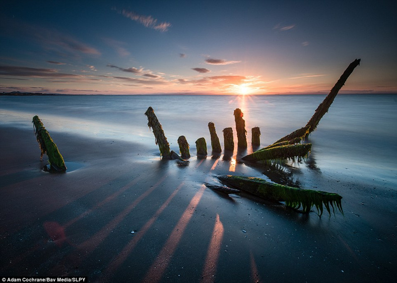 太美以至于失真?這幅圖像看起來像是電腦繪圖而成,但它的的確確是來自于真實的世界。圖中記錄的是2016年7月的一個晚上,蘇格蘭東洛錫安的朗尼得里海灘處,一艘沉船正在下沉。
