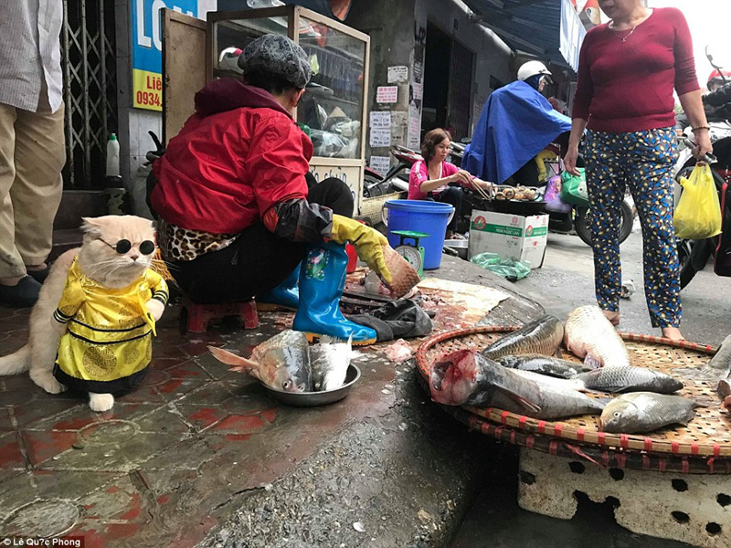 Chó被邀請到一個魚攤旁邊待著,因此吸引了大量顧客前來消費(fèi)。