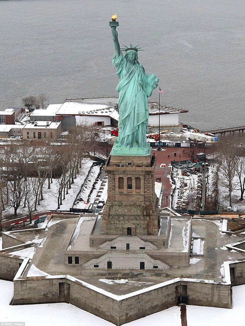 紐約自由女神像上的積雪。