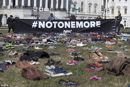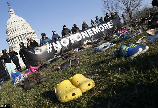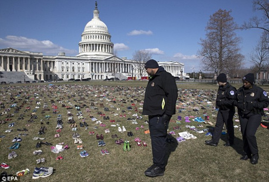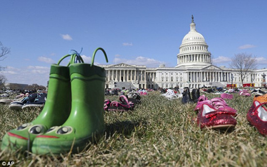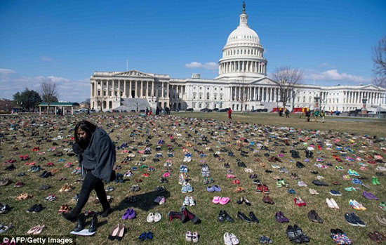 美國(guó)會(huì)大廈前擺放7000雙鞋 紀(jì)念槍口下喪生的美國(guó)兒童
