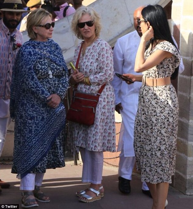 人民網(wǎng)訊 據(jù)每日郵報(bào)報(bào)道,15日,希拉里出現(xiàn)在印度齋浦爾時(shí)穿著一件特制的印度傳統(tǒng)服飾,但是看起來像是特制的衣服,右邊袖子非常寬大,報(bào)道稱,希拉里以此來遮擋自己受傷的手腕。據(jù)稱她兩天前在酒店浴缸中滑倒,手腕受傷。15日,希拉里在胡瑪·阿貝丁的陪同下參觀了印度的歷史古跡。