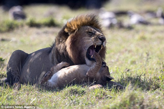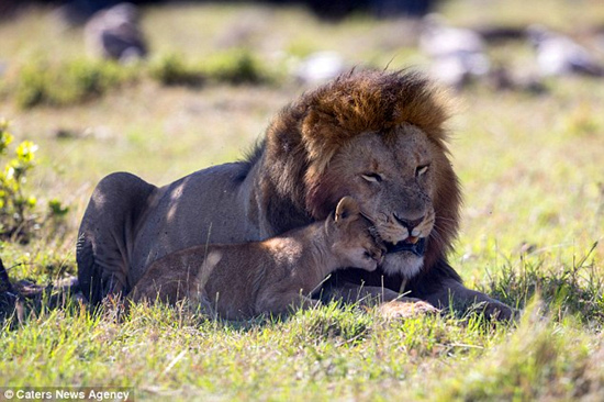 這種畫面可不多見(jiàn),肯尼亞馬賽瑪拉動(dòng)物保護(hù)區(qū),一只剛剛占領(lǐng)獅群并殺死其他幼崽的成年雄獅,抱著一只小獅子玩耍。這只雄獅趕走了小獅子的父親后,與他依偎在一起嬉戲打鬧。這只好奇的幼崽還把爪子伸到雄獅嘴里,玩耍它的大獠牙。