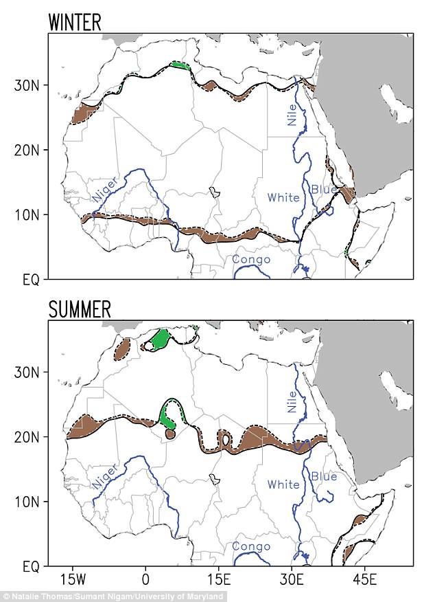 尼加姆認(rèn)為:“撒拉哈地區(qū)夏季氣溫升高,雨季變干與大氣中溫室氣體和氣溶膠的變多有關(guān)!