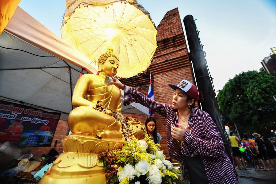 泰國潑水節(jié)上的浴佛儀式