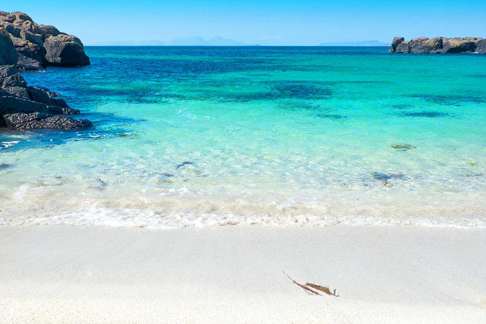 來到這個(gè)海灘的游客將會(huì)看到一片閃閃發(fā)光的白色貝殼沙灘,看起來就像是一張假日宣傳冊。