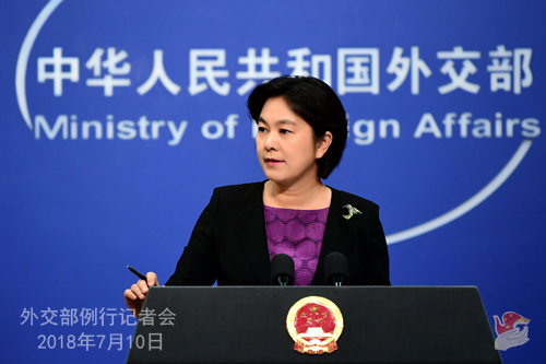 人民網(wǎng)北京7月10日電 據(jù)外交部網(wǎng)站消息,外交部發(fā)言人華春瑩今日主持例行記者會(huì)。