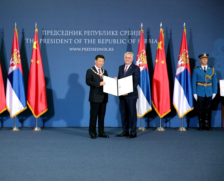 2016年6月18日,習(xí)近平主席在貝爾格萊德與塞爾維亞總統(tǒng)尼科利齊進行了會談,雙方就雙邊關(guān)系及其他共同關(guān)心的問題深入交換意見,達成廣泛共識。尼科利齊總統(tǒng)還向習(xí)近平主席授予了塞爾維亞最高級別勛章——“共和國一級榮譽勛章”。
