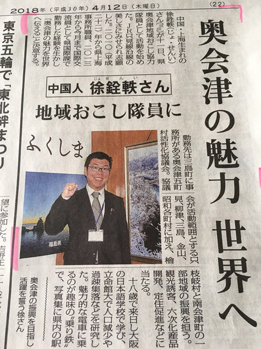《福島民報(bào)》刊登對(duì)徐銓軼的報(bào)道(受訪者供圖)