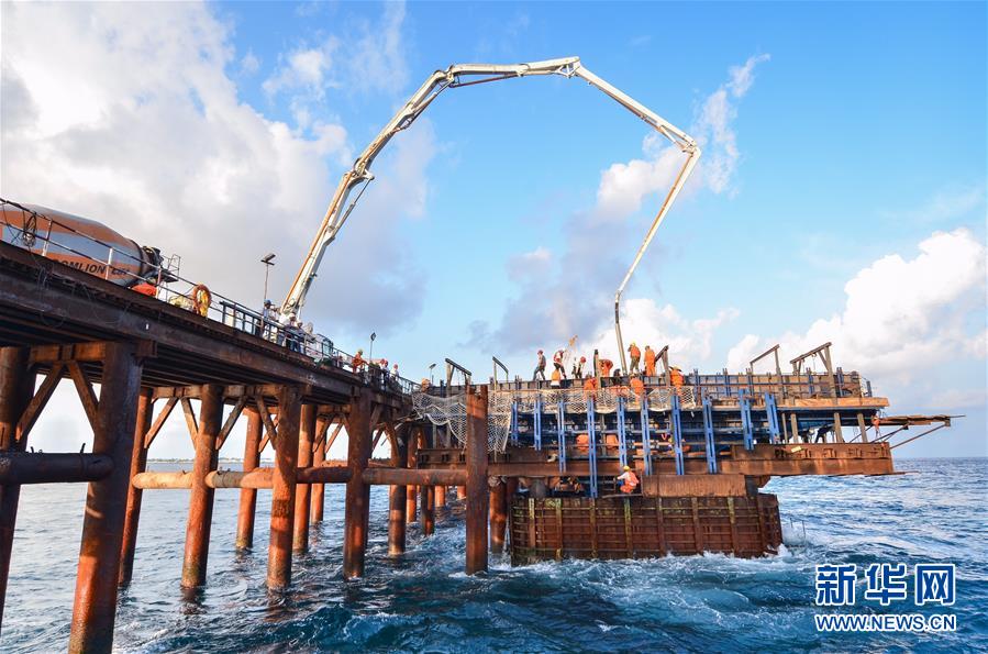 這是2017年4月21日拍攝的馬爾代夫中馬友誼大橋首個(gè)墩身成功澆筑。作為“21世紀(jì)海上絲綢之路”的重點(diǎn)項(xiàng)目,中馬友誼大橋讓馬爾代夫人民的夢(mèng)想變?yōu)楝F(xiàn)實(shí),也成為中馬友誼的重要見證。