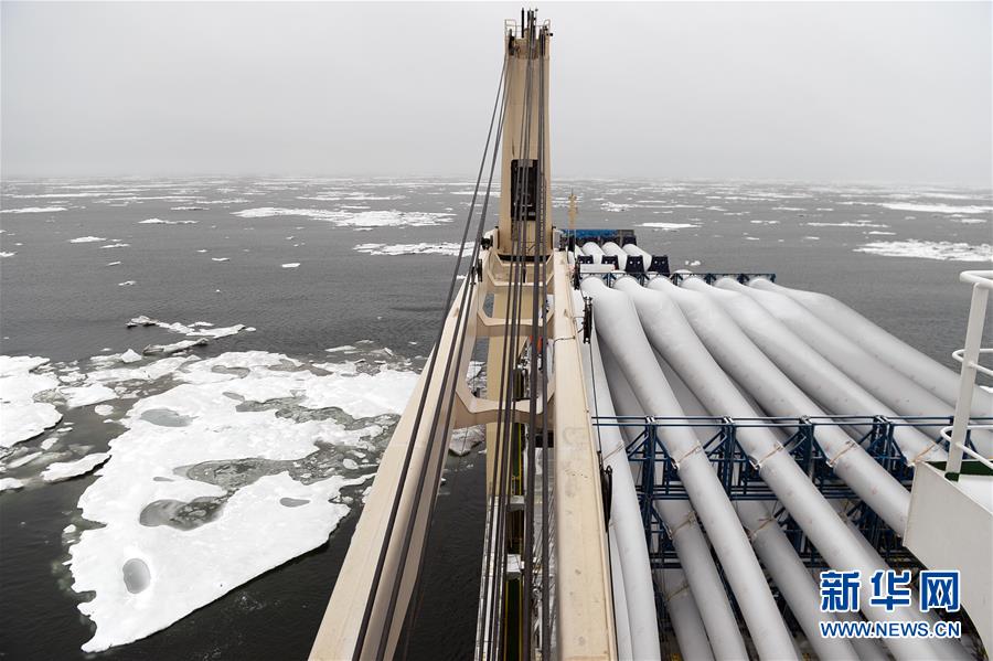 8月20日凌晨,在東西伯利亞海域,中國“天恩”號貨輪穿過大面積浮冰。 首次出征“冰上絲綢之路”的中國“天恩”號貨輪20日凌晨在北極圈首次迎來飄雪,在大面積的浮冰“夾擊”中微速碰撞前行。 新華社記者劉紅霞攝