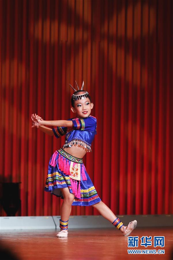 8月22日,在日本東京,一名中國小朋友在藝術(shù)節(jié)上表演舞蹈。 2018華音日中青少年文化藝術(shù)節(jié)22日在日本東京舉行。本次活動邀請北京、大連、青島等地青少年赴日,與日本青少年一起登臺表演,進行藝術(shù)交流。 新華社記者 杜瀟逸 攝