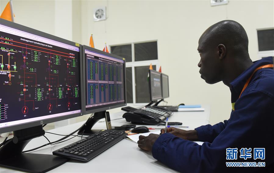 這是2017年11月2日,在科特迪瓦蘇布雷水電站,一名當(dāng)?shù)貑T工在監(jiān)測(cè)發(fā)電數(shù)據(jù)。由中國(guó)承建的蘇布雷水電站是中非基建和產(chǎn)能合作的標(biāo)志性工程。(新華社記者 李百順 攝)