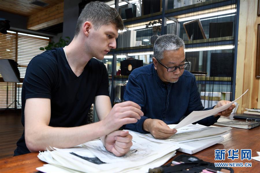 9月17日,俄羅斯列賓美術(shù)學(xué)院學(xué)生丹尼斯(左)和老師徐晉林一起準(zhǔn)備創(chuàng)作《盤古開天辟地》手工書。 近日,俄羅斯列賓美術(shù)學(xué)院三名大學(xué)生來到位于甘肅省蘭州市的讀者出版集團(tuán)“讀者晉林工作室”,開展為期一個(gè)月的文化交流活動(dòng)。三名學(xué)生通過嘗試雕刻《十二生肖》木版畫、印制藏書票、創(chuàng)作《盤古開天辟地》手工書等活動(dòng),感悟?qū)W習(xí)中國文化。據(jù)了解,這是俄羅斯列賓美術(shù)學(xué)院第二年派學(xué)生到“讀者晉林工作室”學(xué)習(xí)交流。 新華社記者 范培珅 攝