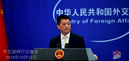 人民網(wǎng)北京10月12日電 據(jù)外交部網(wǎng)站消息,外交部發(fā)言人陸慷今日主持例行記者會。