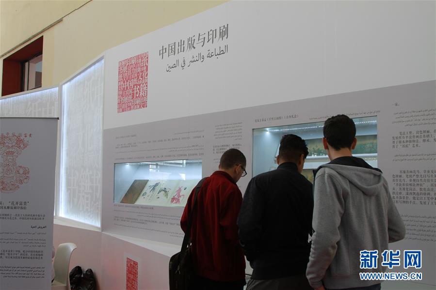 10月30日,在阿爾及利亞首都阿爾及爾,讀者在阿爾及爾國際書展的中國展臺(tái)前觀看中國出版印刷文化展示。