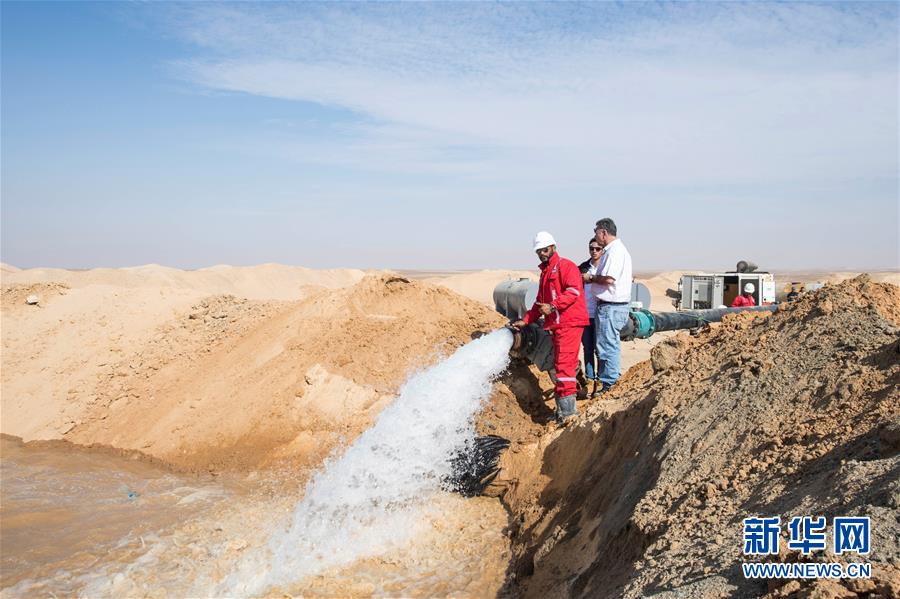 11月21日,在埃及明亞省,地下水從水管里噴涌而出。 2017年,中國(guó)中曼石油公司與阿聯(lián)酋海灣集團(tuán)簽訂合同,為該集團(tuán)在埃及沙漠中的大型農(nóng)業(yè)項(xiàng)目鉆探300口水井。根據(jù)合同,中曼石油將先期完成30口井的試鉆探,剩余水井將以每月7口的速度交付。目前有超過(guò)200名工人在鉆井現(xiàn)場(chǎng)作業(yè),大部分是埃及本地人。 記者李碧念攝