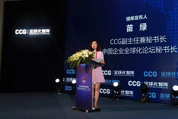 人民網(wǎng)訊 2018年11月16日, CCG副主任兼秘書長、中國企業(yè)全球化論壇秘書長苗綠在第五屆中國企業(yè)全球化論壇上發(fā)布了CCG 《中國企業(yè)全球化報(bào)告(2018)》藍(lán)皮書中國企業(yè)全球化系列榜單,向在2017至2018年“走出去”中表現(xiàn)出色的中國企業(yè)致敬。