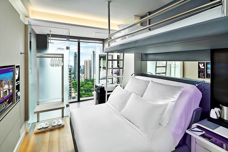 按下按鈕后,Yotel酒店的床鋪可變成沙發(fā)。