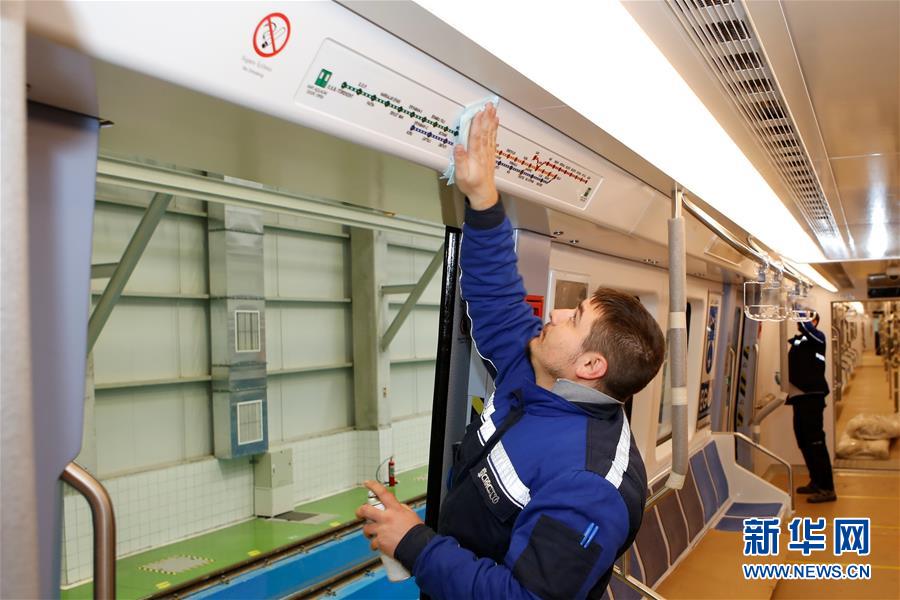 12月12日,在土耳其安卡拉的株機(jī)-MNG公司,一名員工在新生產(chǎn)的地鐵車(chē)廂內(nèi)工作。 新華社記者 秦彥洋 攝