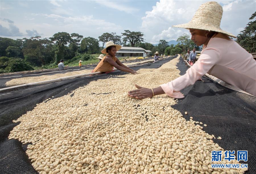 在埃塞俄比亞塔普咖啡產(chǎn)區(qū)的安得拉赫沙卡咖啡莊園,工人將完成水洗的咖啡豆在曬床上鋪開進(jìn)行晾曬(2018年12月8日攝)。新華社記者 張宇 攝