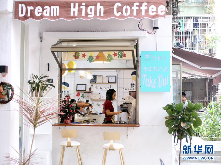 這是在廣東省廣州市拍攝的位于居民樓里的夢(mèng)想舍自家烘焙咖啡館(2018年12月5日攝)。新華社記者 程麗 攝