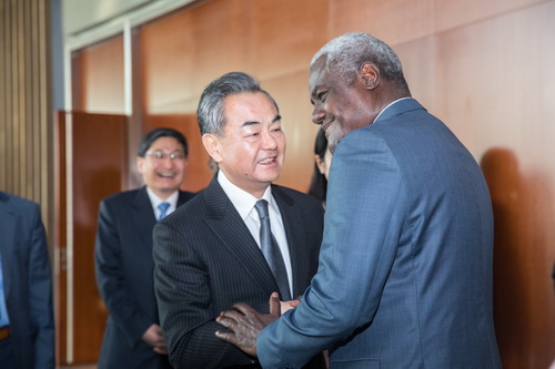 當(dāng)?shù)貢r(shí)間2019年1月4日,國(guó)務(wù)委員兼外交部長(zhǎng)王毅在亞的斯亞貝巴非盟總部同非盟委員會(huì)主席法基舉行會(huì)談。