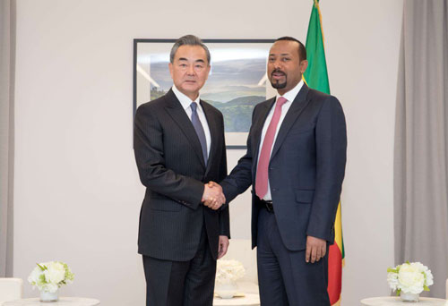 當(dāng)?shù)貢r(shí)間2019年1月3日,埃塞俄比亞總理阿比在亞的斯亞貝巴會(huì)見國務(wù)委員兼外交部長王毅。