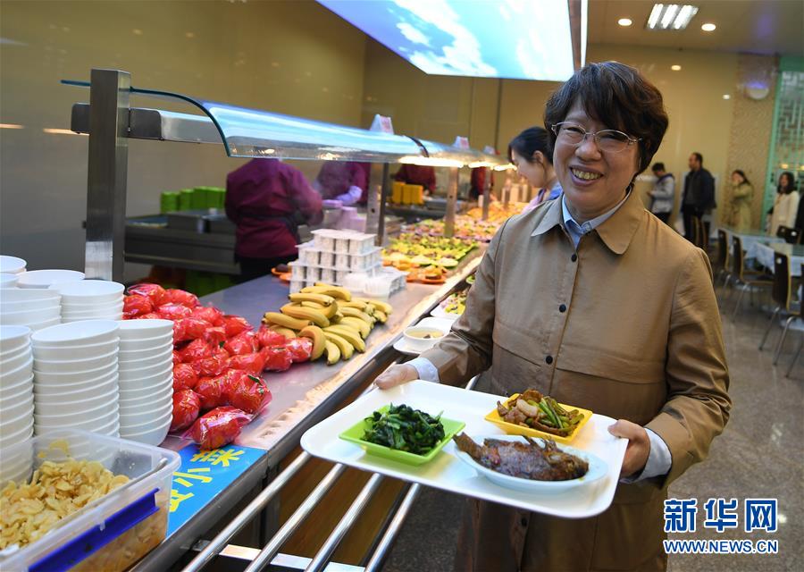 在南京中醫(yī)藥大學(xué)食堂,吉川淳子準備就餐(3月15日攝)。志愿者之外,吉川淳子還有一個身份——南京中醫(yī)藥大學(xué)博士生。 新華社記者 邱冰清 攝