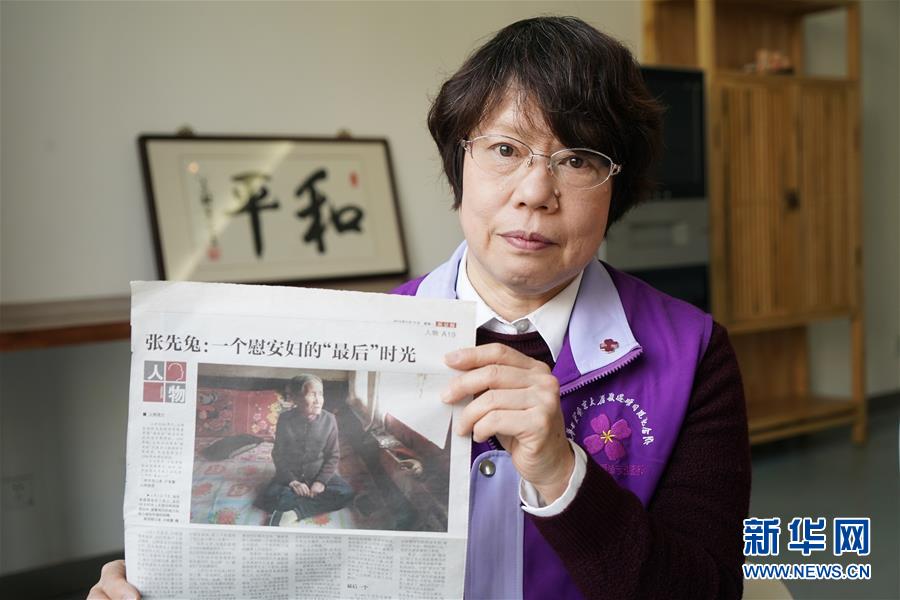在侵華日軍南京大屠殺遇難同胞紀(jì)念館,吉川淳子在展示她收藏的報(bào)道慰安婦的報(bào)紙(3月7日攝)。 新華社記者 季春鵬 攝
