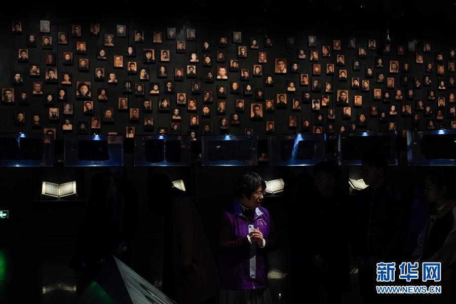 在侵華日軍南京大屠殺遇難同胞紀(jì)念館,志愿者吉川淳子在向參觀者講解(3月7日攝)。新華社記者 邱冰清 攝