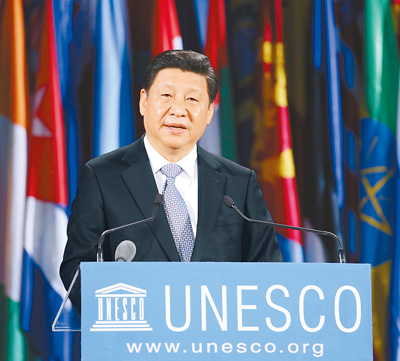2014年3月27日,國(guó)家主席習(xí)近平在巴黎聯(lián)合國(guó)教科文組織總部發(fā)表重要演講。新華社記者 姚大偉攝