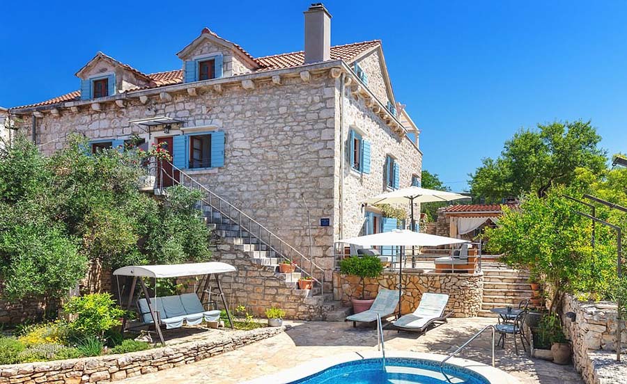 Villa Vicina別墅,位于克羅地亞Brac島美麗的海濱村莊Milna,是一棟19世紀(jì)的別墅,這里有一個(gè)巨大的花園,還設(shè)有一個(gè)大型開(kāi)放式廚房和用餐區(qū),并通向一個(gè)帶游泳池的露臺(tái)。