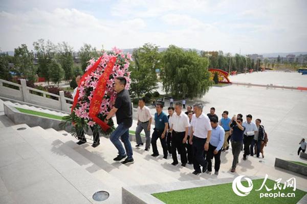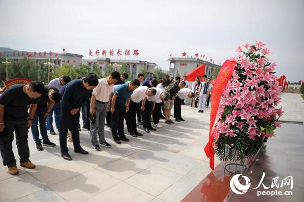 天高云淡,豐碑巍峨。中國工農(nóng)紅軍長征將臺堡會師紀(jì)念碑兩側(cè),“緬懷先烈、不忘初心,走好新的長征路”十五個大字赫然醒目。一顆顆金燦燦的五角星,將紀(jì)念碑前的臺階點(diǎn)綴成了一條“星光大道”。留學(xué)人員代表拾級而上,在紀(jì)念碑前久久駐足,肅立瞻仰,向革命烈士三鞠躬并敬獻(xiàn)花籃。